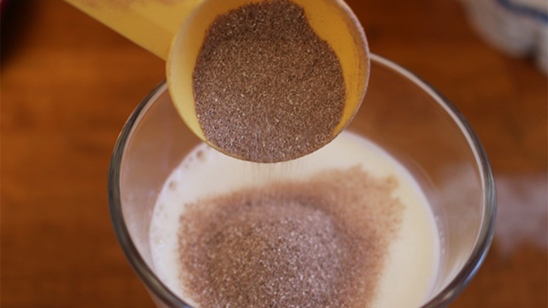 Mỗi lần pha, cho 1 thìa (khoảng 10g) bột vào 150ml nước ấm hoặc sữa ấm, bột, khuấy đều và cho bé uống.