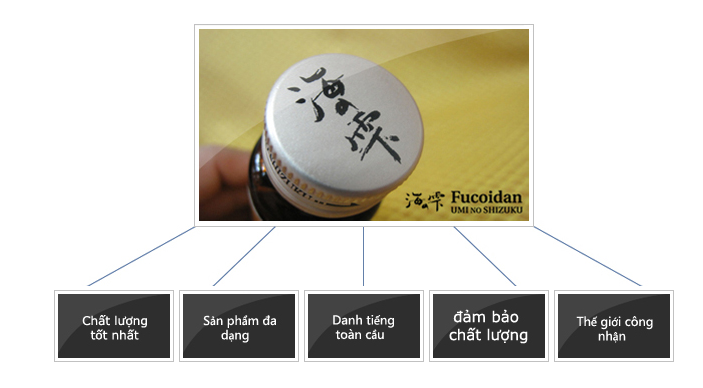 Fucoidan Umi No Shizuku có mặt tại 45 quốc gia trên thế giới và trở thành lựa chọn hàng đầu trong việc bồi bổ sức khoẻ và hỗ trợ điều trị K. Viên uống chứa đến 85% hàm lượng Fucoidan tinh khiết từ hai loài tảo nâu Mozuku và Mekabu, với độ tinh khiết cực cao, dễ dàng hấp thụ vào cơ thể. Thêm vào đó, viên uống kết hợp thêm chiết xuất nấm Agaricus làm tăng thêm khả năng hỗ trợ tăng cường sức đề kháng và hệ miễn dịch, mang lại cơ thể khoẻ mạnh và giảm thiểu nguy cơ mắc các bệnh.